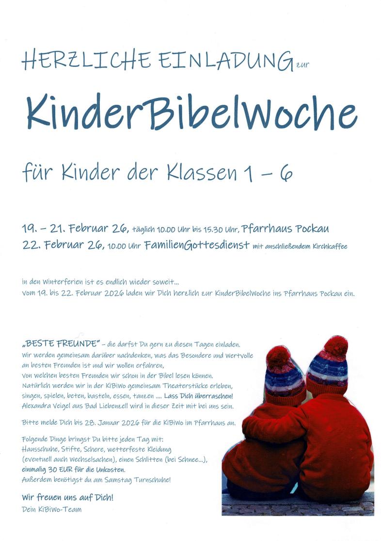 Kinder-Bibelwoche für Kinder der Klassen 1-619.-21.02.2026, täglich 10 Uhr – 15:30 Uhr im Pfarrhaus Pockau